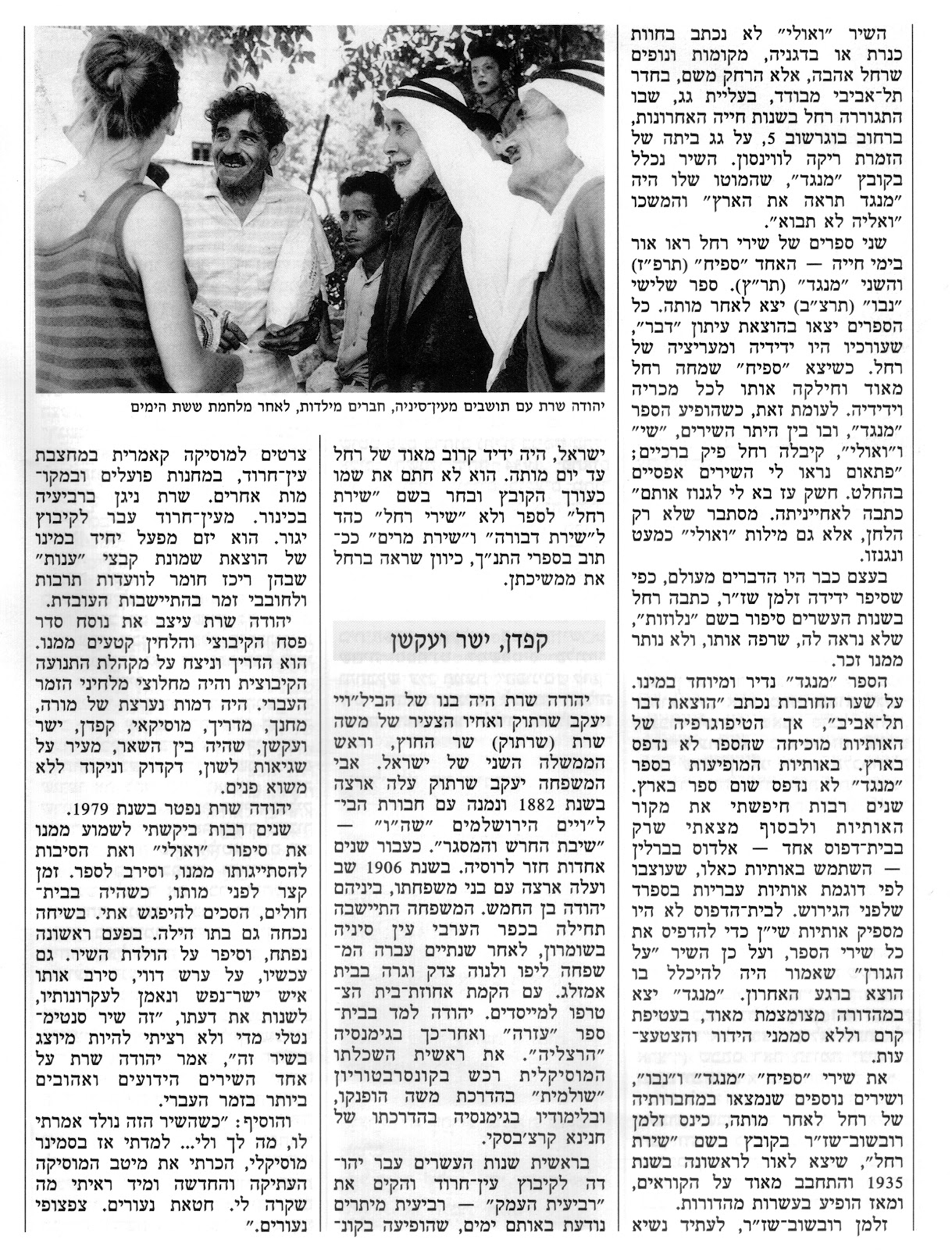 והנה קטע מרגש שלא קשור ל'ואולי' אלא לחיבור שבין שני היוצרים הגדולים – המשוררת רחל והמלחין יהודה שרת.