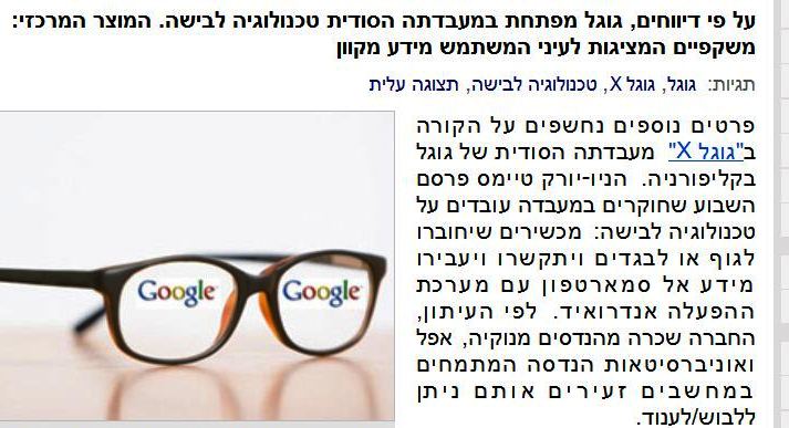 ובאמת מי יודע מה צופן בחובו העתיד? הנה במאמר שפורסם לפני שנה, נאמר כי בחברת 'גוגל' מפתחים משקפיים מיוחדים, שקשורים למחשבים שאותם אפשר ללבוש ואפילו לענוד!