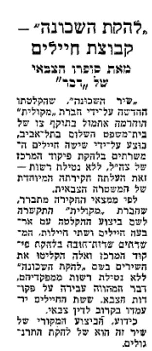 השבמחקיש ברשותי את התקליט המדובר של שיר השכונה 1963. מצב מצויין בהתאם לגילו. מעוניינת למכור ואשמח לשמוע חוות דעת לגבי מחירו בשוק והיכן אפשר למכור אותו. ידוע לי שהוא די נדיר עקב הסיפור שלו. תודה- לילי וולף - @פינה נוסטלגית- הדף שלי בפייסבוק המייל שלי- liliw53@walla.com