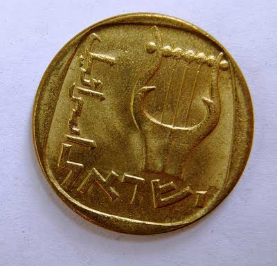 מטבע 25 אגורות שנטבע ב-1979 (מקור: השפעת התנ"ך על חיי היום יום בישראל) |