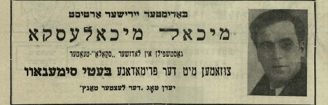 בשנים 1935-1933 הוצגה בתיאטראות בוורשה ובלודז' אופרטה ושמה 'דער לעצטער טאַנץ' (הריקוד האחרון), ובה כיכב השחקן היהודי-האמריקני מיכאל מיכאֶלֶסְקוֹ (1957-1888). מיכאלסקו גילם תפקיד של זמר קברט, ששר במגוון סגנונות, כולל פרקי חזנות, ובינו לבין עצמו גם שר על געגועיו לעיירתו בלז. העיתונות ביידיש זיכתה אותו בשל כך בתואר 'בעלזער חסיד'...
