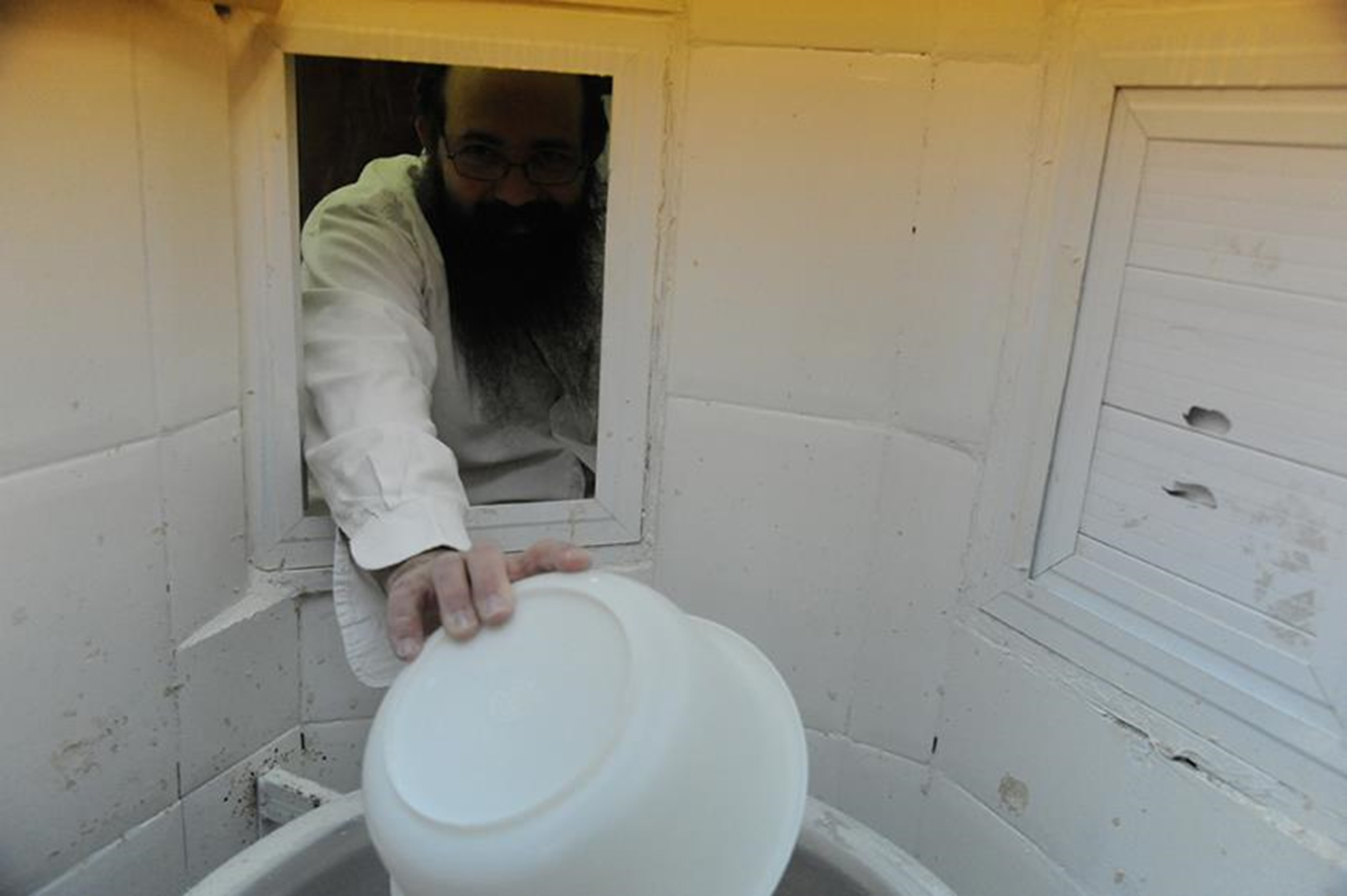 גם כאן מסננים את המים דרך בד, שלא יהיה במים ולוּ גרגר זעיר של חמץ.
